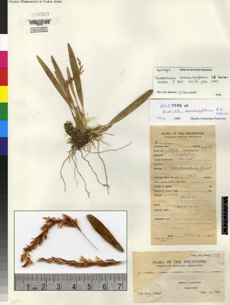 Dendrochilum tetradactyliferum is an orchid belonging to the sub family Epidendroideae.