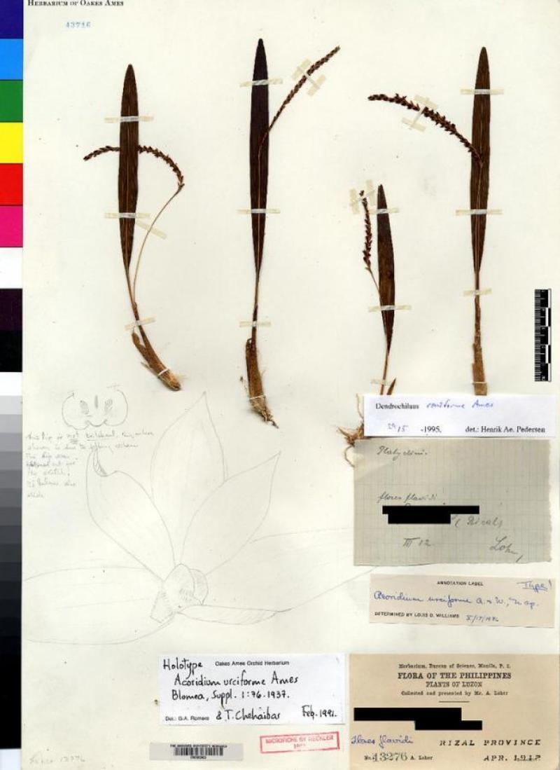 Dendrochilum urciforme is an orchid belonging to the sub family Epidendroideae.