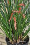 Sympodial. Grows to 40cm. Each new growth has a single erect rigid leaf that grows to 0.2-40cm long. Pseudobulbs grow to 2.5cm