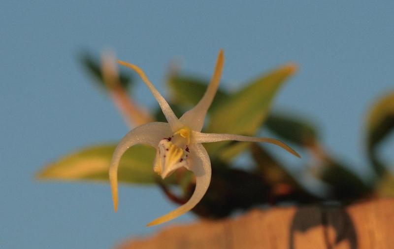 Sympodial. Grows to 15cm. Each new growth has numerous erect oblong shaped, tongue shaped leaves that grow to 0.5-5cm long. Pseudobulbs grow to 0.4-60cm. The plant tends to climb or sprawl with each new growth