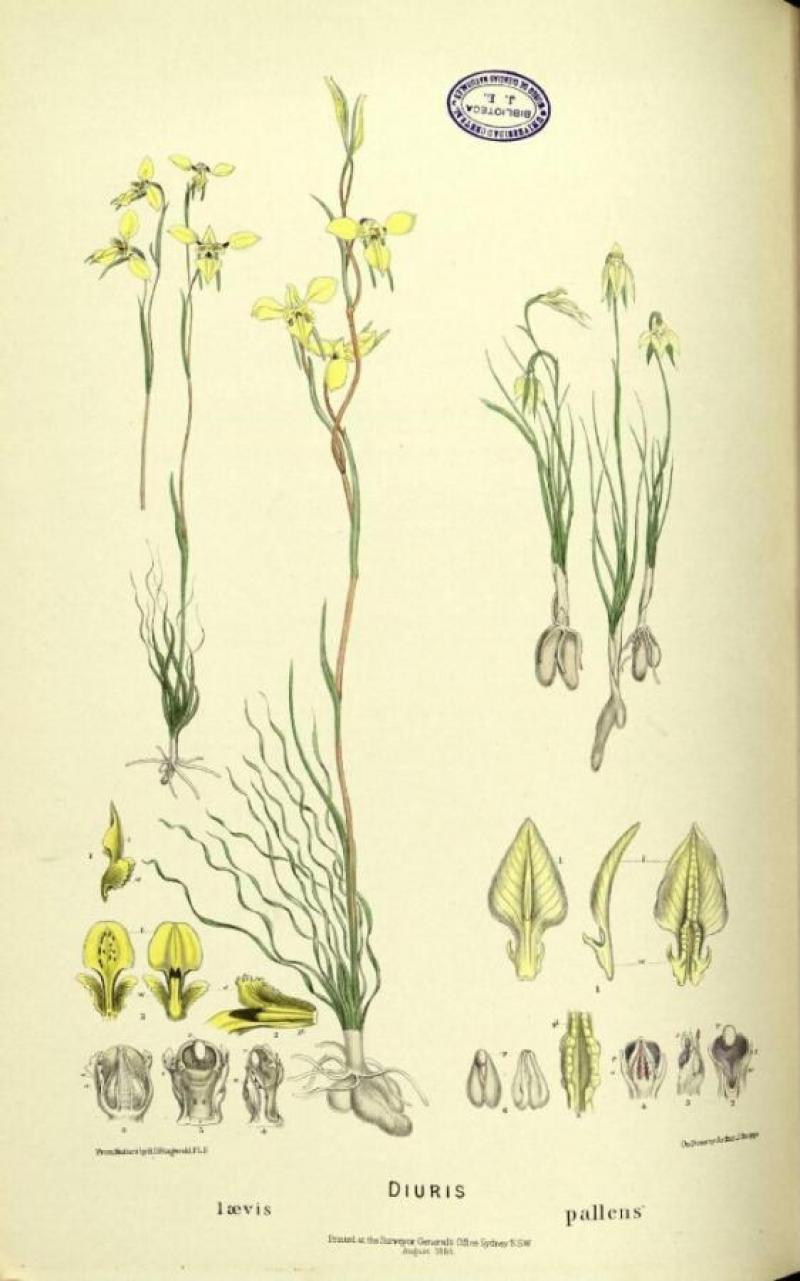 Diuris pallens is a cold to cool growing orchid belonging to the sub family Orchidoideae.