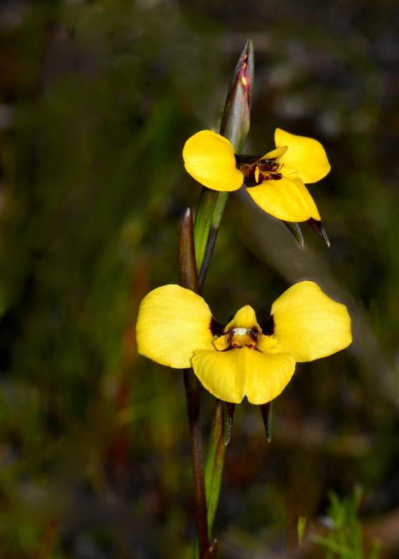 Also known as: Purdie's Diuris or Purdie's Donkey Orchid in the subfamily: Orchidoideae