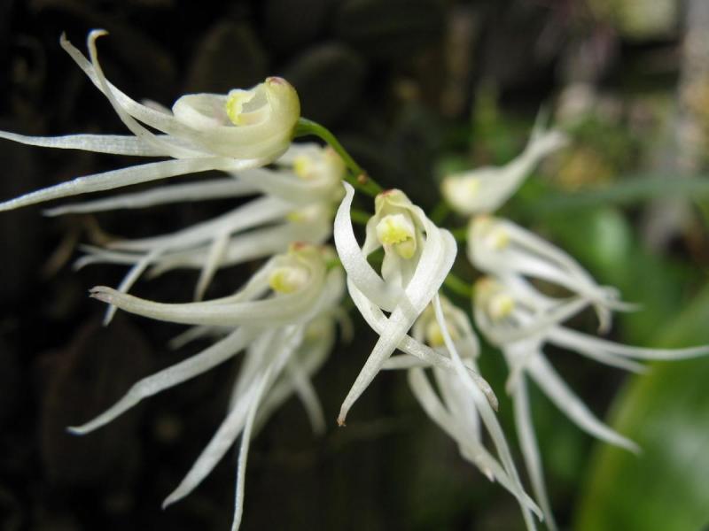 Dockrillia linguiformis is a miniature cool to warm growing epiphytic or lithophytic orchid belonging to the sub family Epidendroideae.