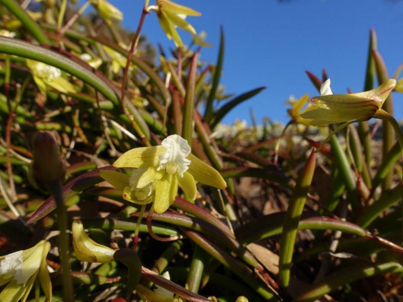 Also known as: Streaked Rock Dockrillia or The Yellow Rock Orchid in the subfamily: Epidendroideae
