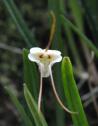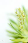 Each new growth has a single leathery erect, elliptic leaf that grows to 0.5-10cm long. Pseudobulbs grow to 1-2cm. The plant tends to climb or sprawl with each new growth