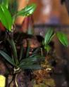 Sympodial. Grows to 2.5cm. Each new growth has a single thick leaf that grows to 0.5-5cm long. Pseudobulbs grow to 0.4-0.7cm