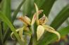 Grows to 45cm. Each new growth has numerous leathery elliptic, lance shaped leaves that grow to 1.4-30cm long. Pseudobulbs grow to 1-35cm