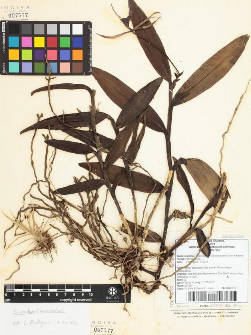 The Buenaventura Epidendrum is an orchid belonging to the sub family Epidendroideae. It is named after a town on the Pacific coast of Colombia.