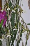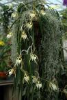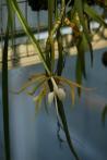 Grows to 200cm. Each new growth has a single leaf that grows to 46cm long. Pseudobulbs grow to 10cm. The plant tends to climb or sprawl with each new growth and forms pendant or arching growths