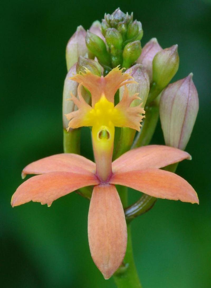 The Rock Living Epidendrum is a small to medium sized cool to warm growing epiphytic or lithophytic orchid belonging to the sub family Epidendroideae native to Brazil and Peru.