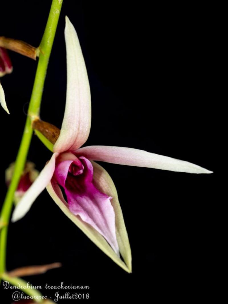 Treacher's Epigeneium is a sympodial warm to hot growing epiphytic orchid belonging to the sub family Epidendroideae. It is named after the Colonial Secretary of Labuan - Island near Borneo - in the 19th century.