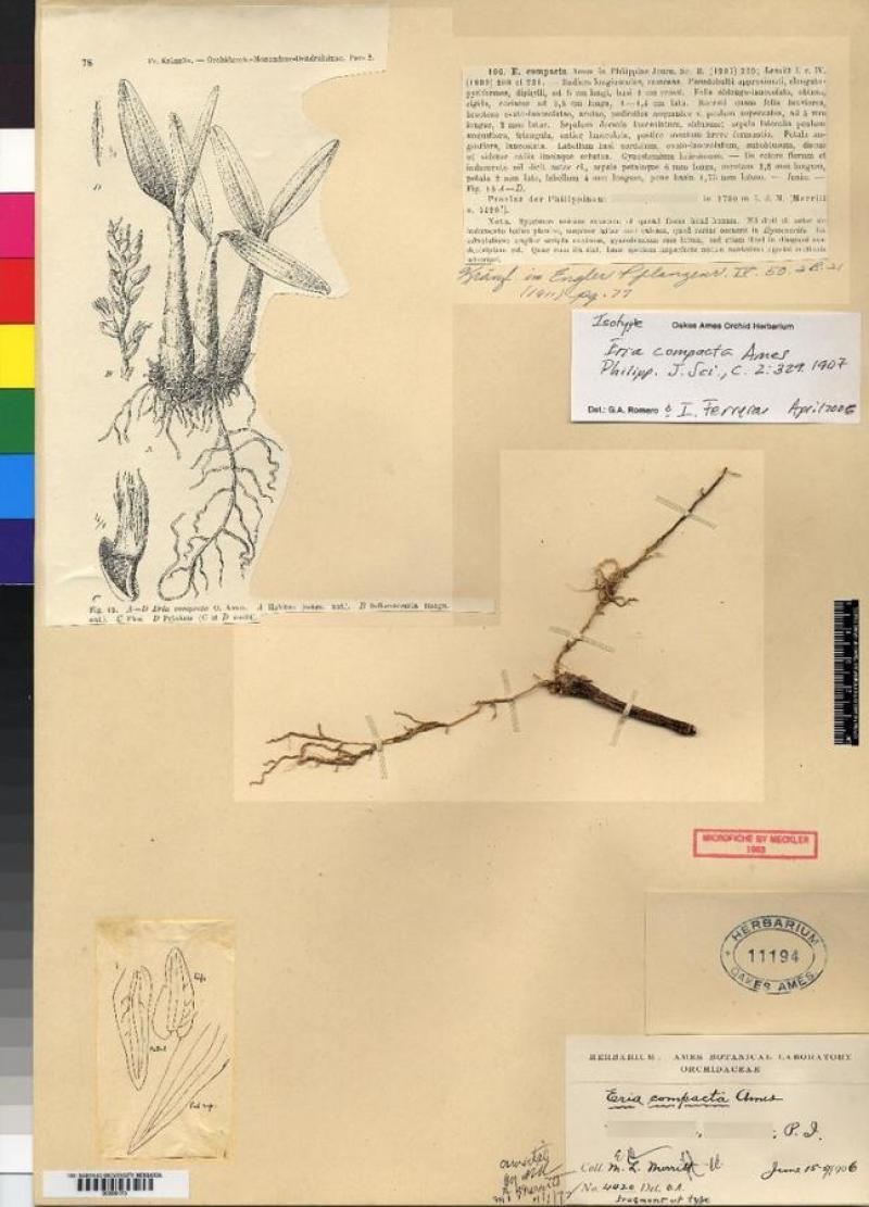 Eria compacta is an orchid belonging to the sub family Epidendroideae.