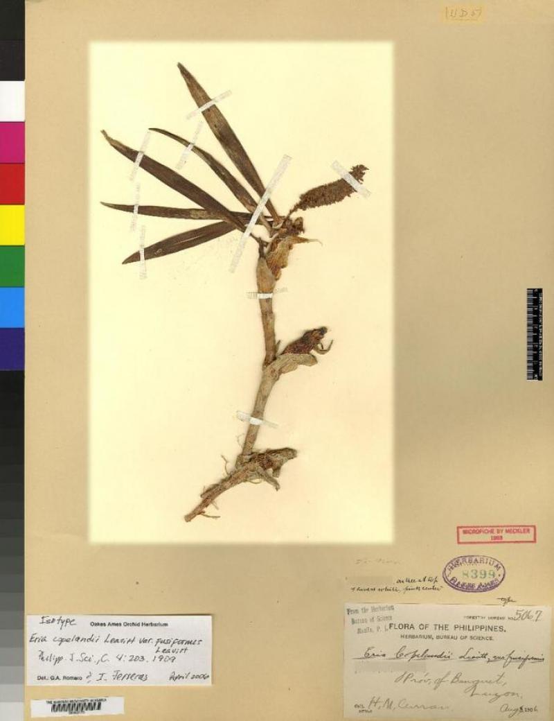 Copeland's Eria is an orchid belonging to the sub family Epidendroideae.