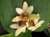 Grows to 30cm. Each new growth has numerous leathery lance shaped, oblong shaped leaves that grow to 3-15cm long. Pseudobulbs grow to 8-15cm