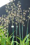 Grows to 60-150cm. Each new growth has numerous lance shaped oblong shaped leaves that grow to 2-40cm long. Pseudobulbs grow to 1-25cm