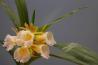 Grows to 20cm. Each new growth has numerous erect lance shaped, tongue shaped leaves that grow to 2.4-26cm long. Pseudobulbs grow to 0.8-20cm