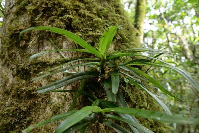 Monopodial. Grows to 5-30cm. Each new growth has numerous arching lance shaped, oblong shaped leaves that grow to 0.8-28cm long. The plant forms pendant or arching growths