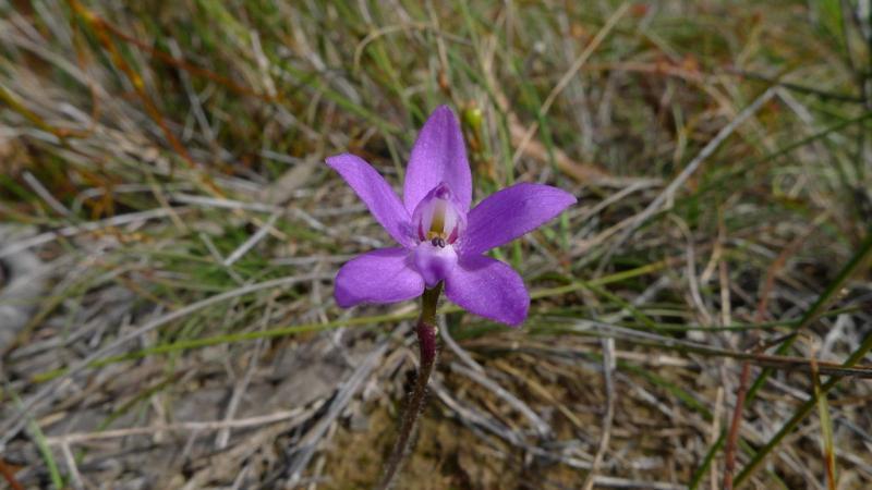 Also known as: The Least Glossodia or The Small Waxlip Orchid in the subfamily: Orchidoideae