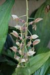 Sympodial. Grows to 50cm. Each new growth has numerous leathery leaves that grow to 5-45cm long. Pseudobulbs grow to 4-9cm