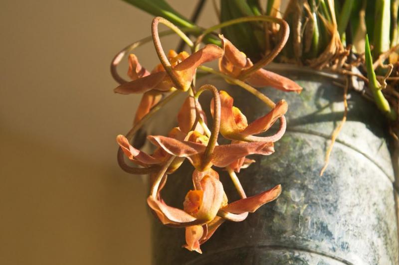 Use water retentive media such as moss to prevent roots from drying out quickly This plant does well mounted to Cork slabs. Repotting is best done annually.