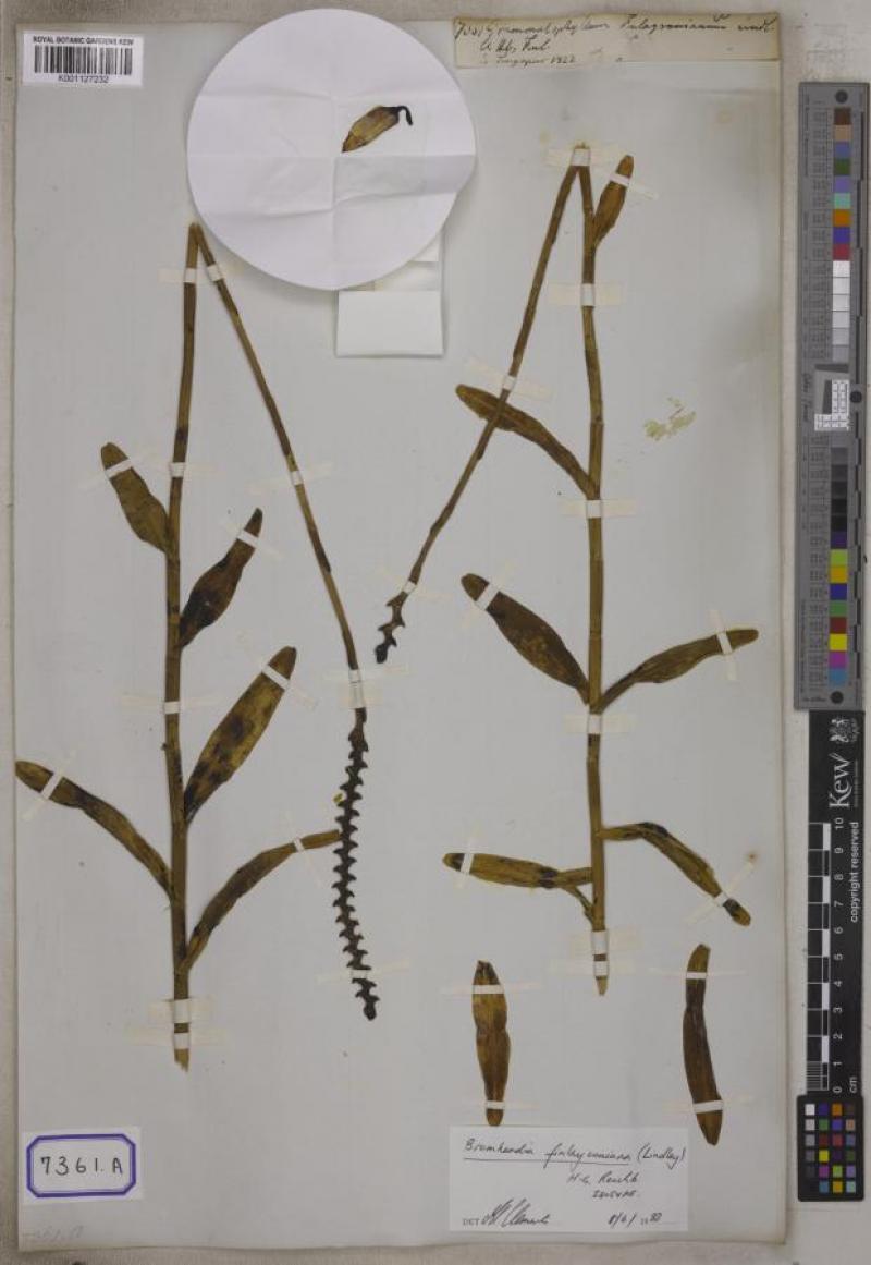 Grammatophyllum finlaysonianum is a warm to hot growing orchid belonging to the sub family Epidendroideae.
