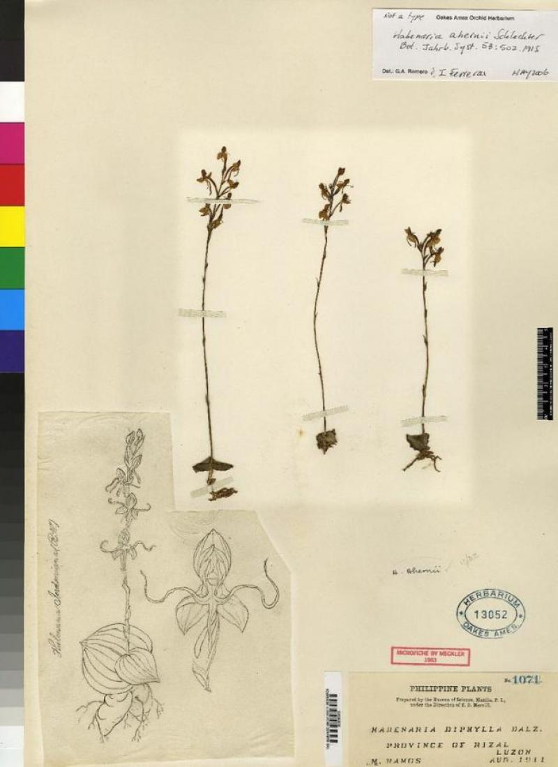 Habenaria ahernii is an orchid belonging to the sub family Orchidoideae.