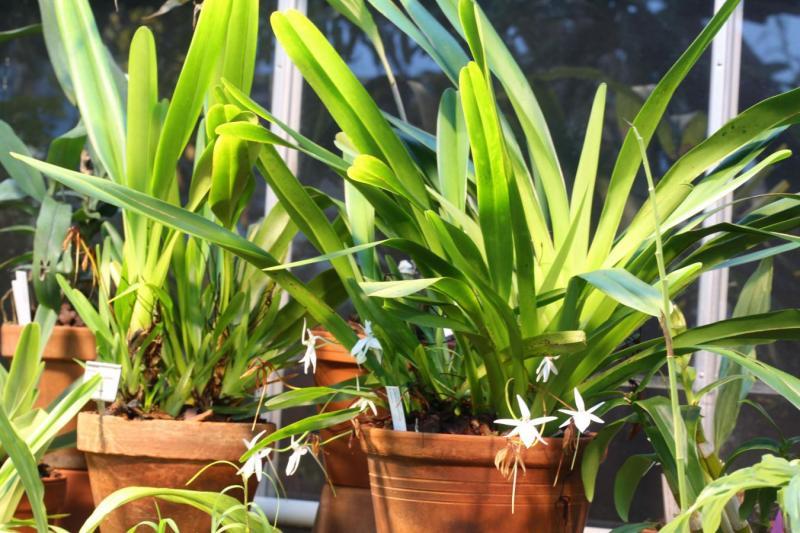 The Sacked Jumellea is a medium sized monopodial warm to hot growing epiphytic orchid belonging to the sub family Epidendroideae native to Madagascar.