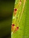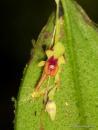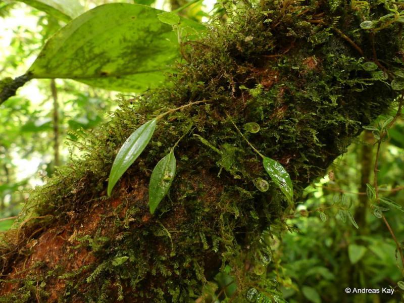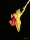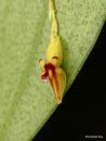 The Hidden Lepanthes is a cold to warm growing orchid belonging to the sub family Epidendroideae native to Ecuador. The name refers to the inflorescence behind the leaf and the minute lip obscured by the column.