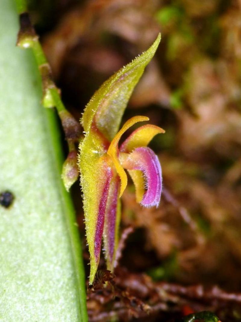The Bent Column Lepanthes is a cold growing orchid belonging to the sub family Epidendroideae.