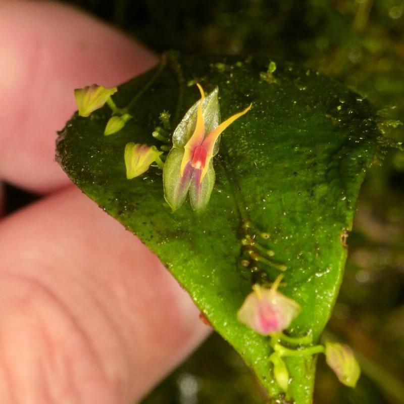 The Tail Like Petal Lepanthes is a cold growing orchid belonging to the sub family Epidendroideae native to Ecuador. The name refers to the long-acuminate upper lobe of the petal.