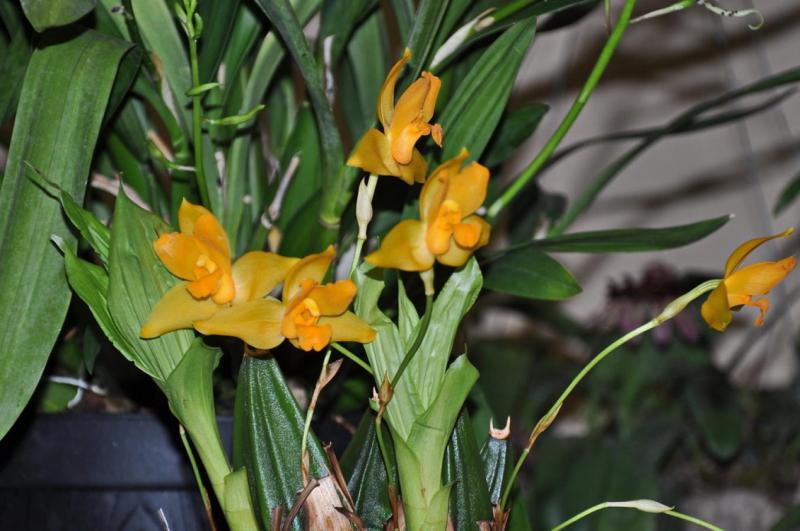 It's recommended to heavily reduce the water amount at the middle to end of autumn to trigger dormancy. Leaves on older bulbs will begin to drop during this time while the newer bulbs continue to mature until terminal leaves appear at the tip of the pseudobulbs.