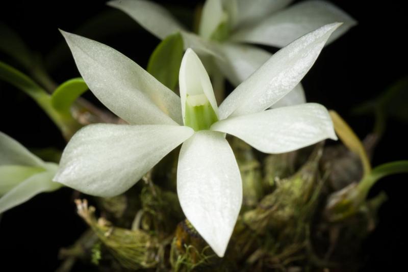 Maccraithea prasina is a miniature warm growing epiphytic orchid.