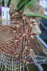 Sympodial. Grows to 24cm. Each new growth has a single lance shaped leaf that grows to 1.4-18cm long. Pseudobulbs grow to 0.5-6cm