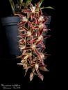 Sympodial. Grows to 16-22cm. Each new growth has a single leathery erect leaf that grows to 2-17cm long. Pseudobulbs grow to 1.5-5cm
