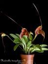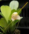 Sympodial. Grows to 6-15cm. Each new growth has numerous leathery erect, elliptic leaves that grow to 1.5-12cm long. Pseudobulbs grow to 1.5-3cm