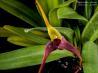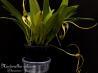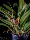 Grows to 16-35cm. Each new growth has a single leathery thick, erect leaf that grows to 12-28cm long. Pseudobulbs grow to 4-7cm
