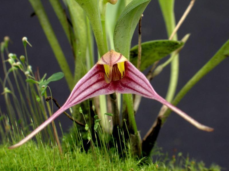 The Tusked Masdevallia is a miniature sympodial cool growing epiphytic orchid belonging to the sub family Epidendroideae native to Colombia. The name refers to the tusklike tails of the lateral sepals.