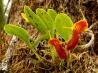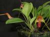 Sympodial. Grows to 1-12cm. Each new growth has numerous leathery erect leaves that grow to 1.5-9.5cm long