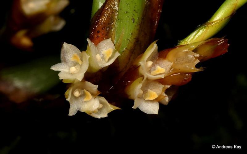 Also known as: The Small or Ornithidium vestitum Pseudomaxillaria chloroleuca Ornithidium parviflorum Ornithidium simulans Pseudomaxillaria vestita Ornithidium confertum Ornithidium chloroleucum Pseudomaxillaria rhomboglossa Pseudomaxillaria exigua Pseudomaxillaria virescens Pseudomaxillaria conferta Camaridium vestitum Ornithidium virescens Ornithidium rhomboglossum Cymbidium vestitum Camaridium purpureum Camaridium purpureum var. parviflorum Camaridium micranthum Maxillaria exigua Maxillaria conferta Maxillaria simulans Maxillaria purpurea var. parviflora in the subfamily: Epidendroideae
