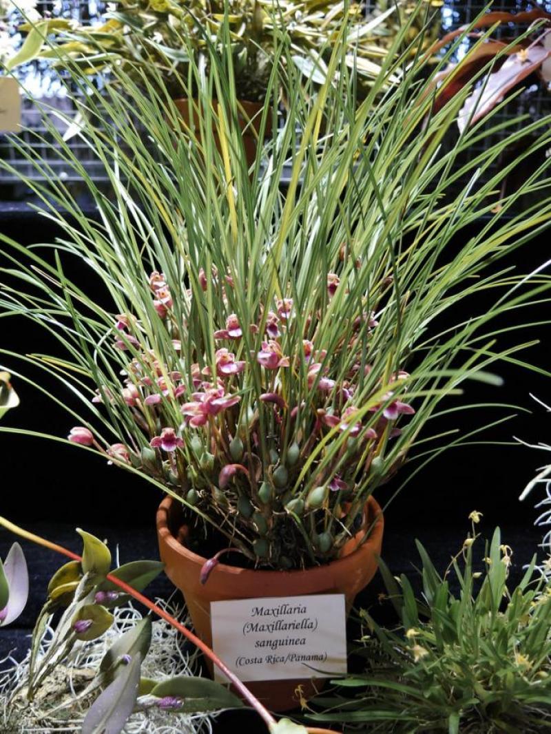 Maxillariella sanguinea is a hot growing epiphytic orchid belonging to the sub family Epidendroideae.