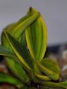 Monopodial. Grows to 6.4-15cm. Each new growth has numerous thick erect leaves that grow to 5-10cm long