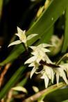 Grows to 30cm. Each new growth has a single lance shaped leaf that grows to 0.8-22cm long. Pseudobulbs grow to 5cm. The plant tends to climb or sprawl with each new growth