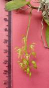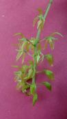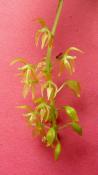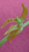 Sympodial. Grows to 13cm. Each new growth has a single leathery rigid, oblong shaped leaf that grows to 3-11cm long. Pseudobulbs grow to 0.7-3cm