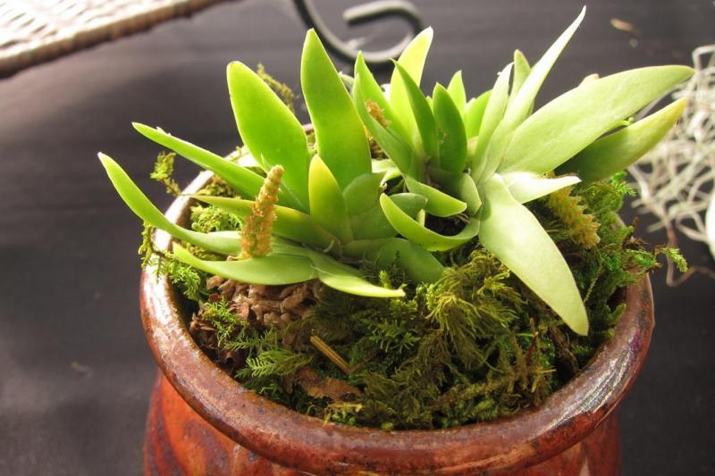The Cut in Half Oberonia is a warm to hot growing orchid belonging to the sub family Epidendroideae.