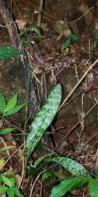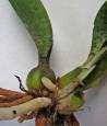 Each new growth has a single leathery leaf that grows to 1-30cm long. Pseudobulbs grow to 2-4cm