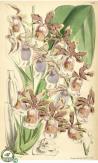 Sympodial. Grows to 23-30cm. Each new growth has a single leathery erect, oblong shaped leaf that grows to 2.5-18cm long. Pseudobulbs grow to 2.5-13cm