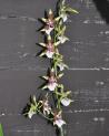 Sympodial. Grows to 26cm. Each new growth has numerous erect arching leaves that grow to 4-20cm long. Pseudobulbs grow to 4-6cm. The plant tends to climb or sprawl with each new growth