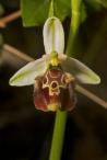 Ophrys lacaena is a miniature to small sized cold to cool growing terrestrial orchid belonging to the sub family Orchidoideae.