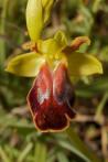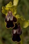 Ophrys leucadica is a cold to cool growing terrestrial orchid belonging to the sub family Orchidoideae.