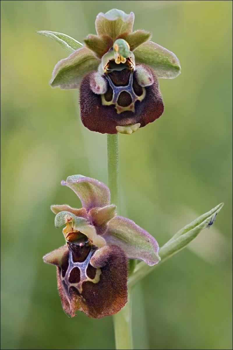 Ophrys untchjii is a miniature to small sized cold to cool growing terrestrial orchid belonging to the sub family Orchidoideae.
